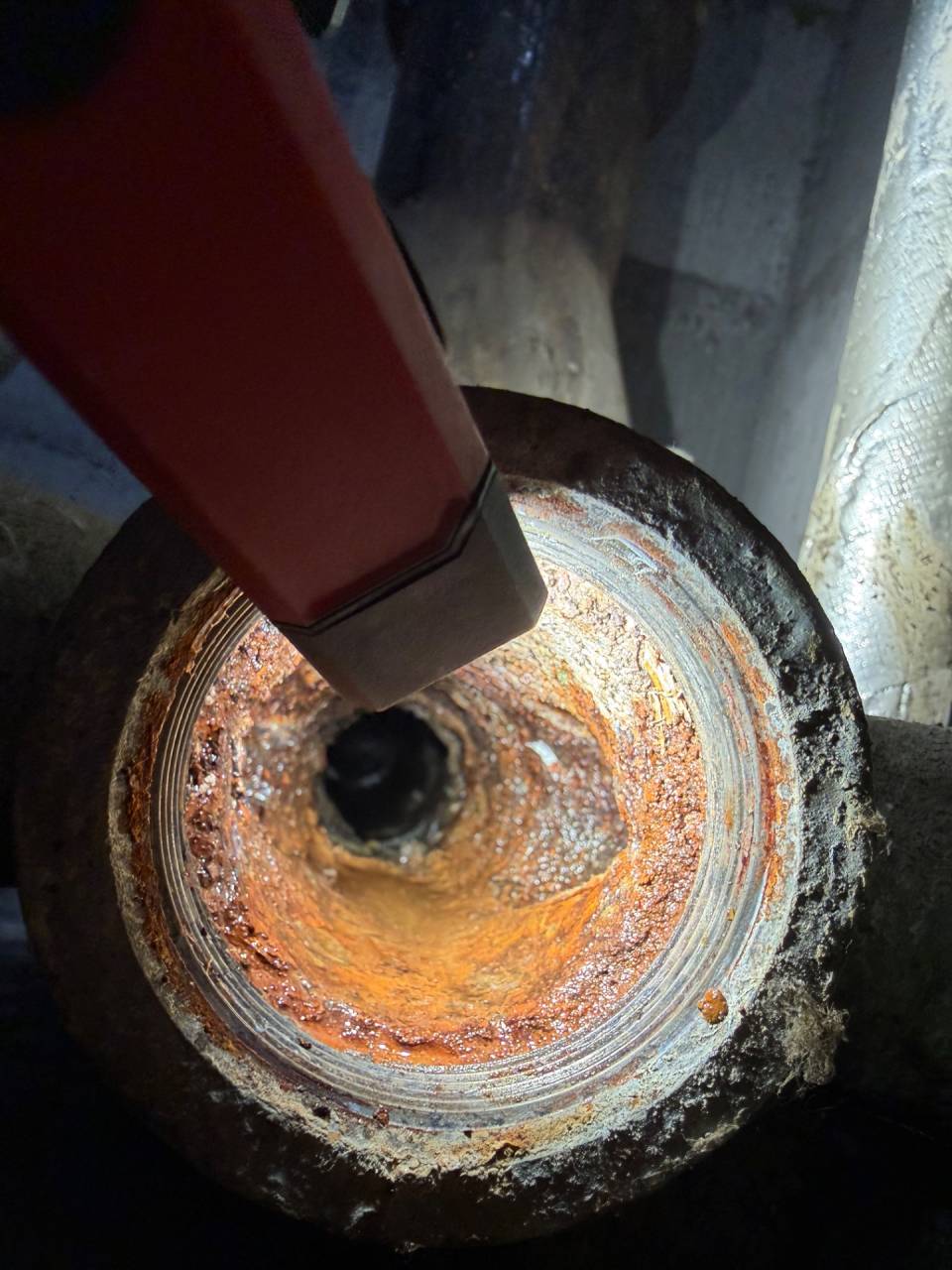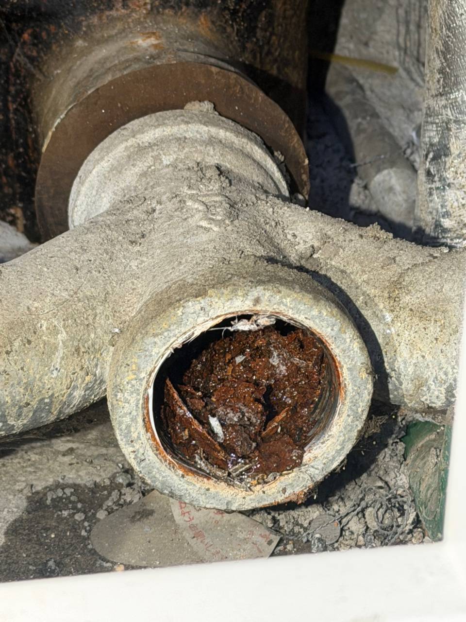 排水管詰まり除去 2026/04/07 排水管の詰まり除去の様子です。 キッチンの排水がながれなくなってしまうほどの詰まりでした。 排水管の掃除口を開けてみると、配管の中がサビで塞がっていました。 昔の配管は鉄管で配管していることが多く、サビて詰まってしまうことがあります。 配管の中のサビを取り除いて、キッチンの排水も流れるようになりました。 今回は、サビの除去で詰まりは解消しました。 鉄管で排水管を配管している場合は、定期的なメンテナンスが必要です。